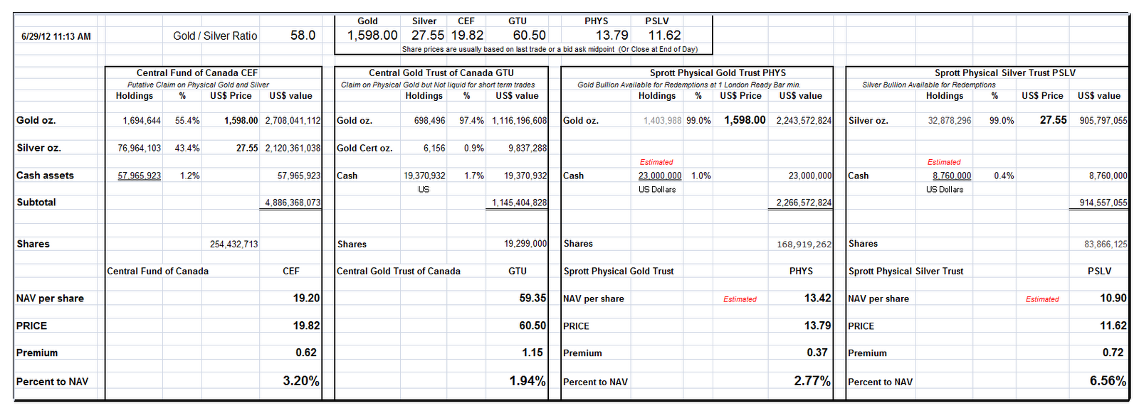 Net Asset Value Premiums of Certain Precious Metal Trusts and Funds