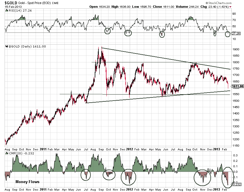 If we do get down as low as 1570 one might be inclined to step in and buy, adding to longer term holdings and for a trade, with an eye to that 1550 as a low and an upside target north of 1700.