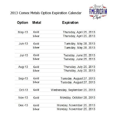 I do not see anything related to option expiration. The next stock option expiration is next week on the 19th, and the next Comex expiration is the Thursday after that on 25 April.