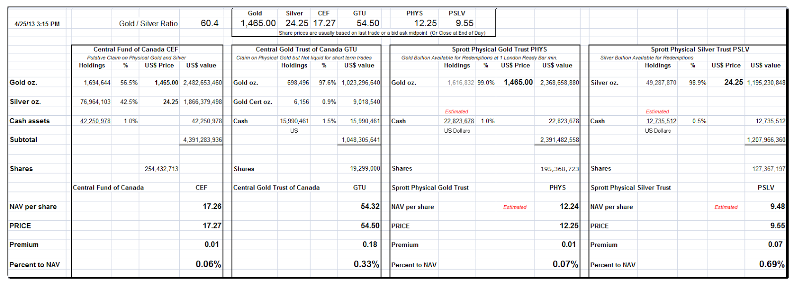 Net Asset Value Premiums of Certain Precious Metal Trusts and Funds