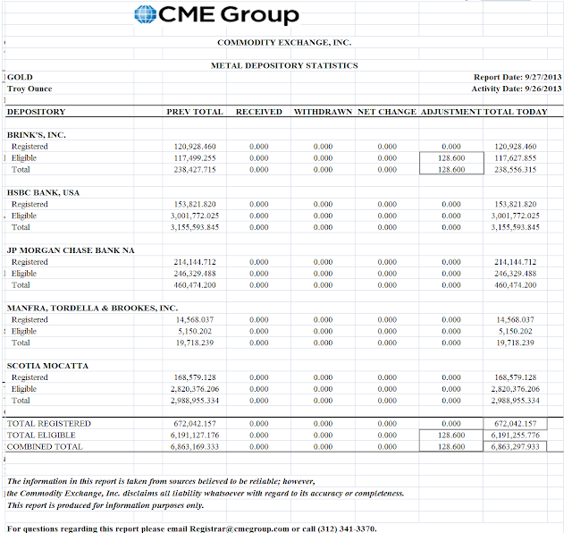 There was no activity in or out of the COMEX warehouses yesterday, with only a small adjustment at Brinks.