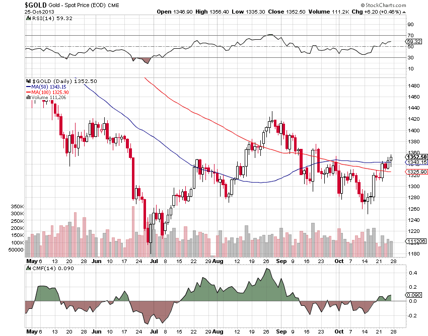 This would also cover the traditional whacking on the metals around an FOMC meeting announcement on Wednesday. I doubt very much we will see anything new out of the Bernanke Fed as he winds down his tenure. We may see some acknowledgement of the damage which the government shutdown has done to the real economy.