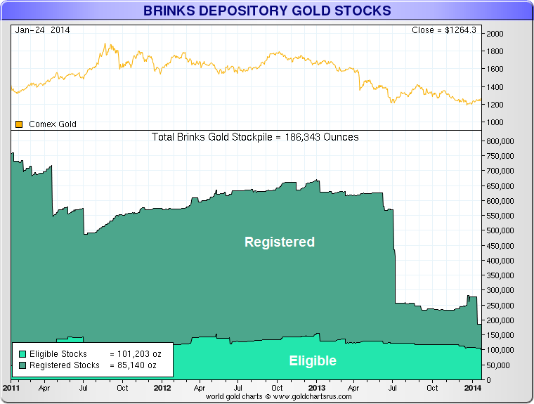 I cannot believe how little gold is left at Brinks. They have gone from total ounces of about 650,000 at the end of 2012 to a little over 186,000 ounces now.