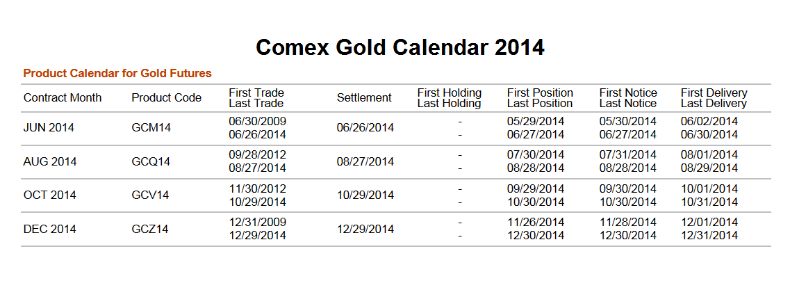 If you look at the metals calendar below, tomorrow is first notice day for June.