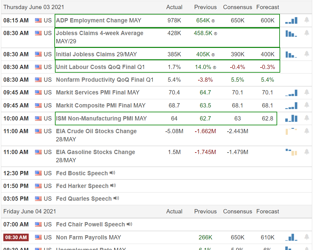 The implication was that the Non-Farm Payrolls number tomorrow would also be much better, and thereby put pressure on the Fed to taper from its easy money policy much soooner than expected.