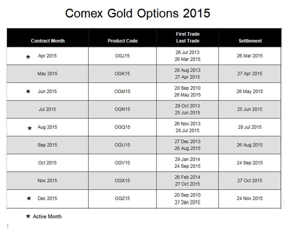 For your convenience I have included the Comex calendar for the futures and for options below.