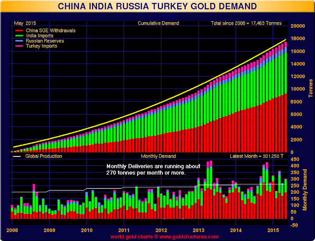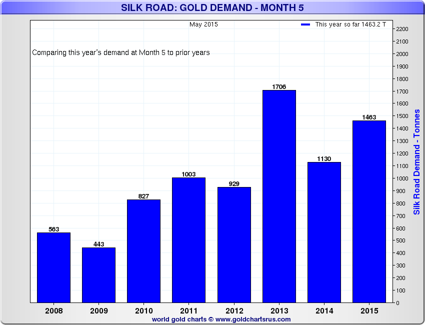 Nick Laird at sharelynx.com has created chart that tracks the known physical gold demand for what he calls 'The Silk Road.'