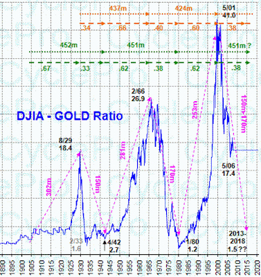 We suspect the Dow/Gold ratio will go back again below 2. Whether that happens at Dow 6000 or Dow 60000 is really a matter of how the Fed navigates the propping of the financial system, and the inflation of the US dollar.