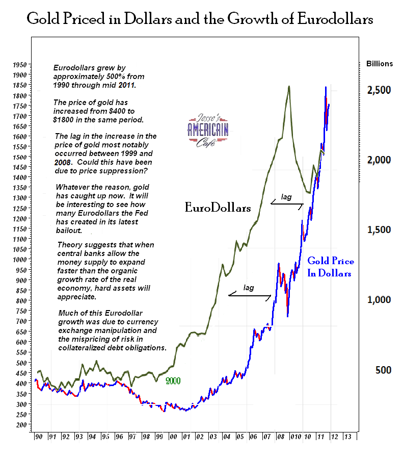 Speaking of lags, I think the unusually long lag between the growth in Eurodollars and the price of Gold can be attributed to the gold sales programs by the Western Central Banks. Once those programs were suspended, and the Banks turned again into net buyers, the gold price rose dramatically.