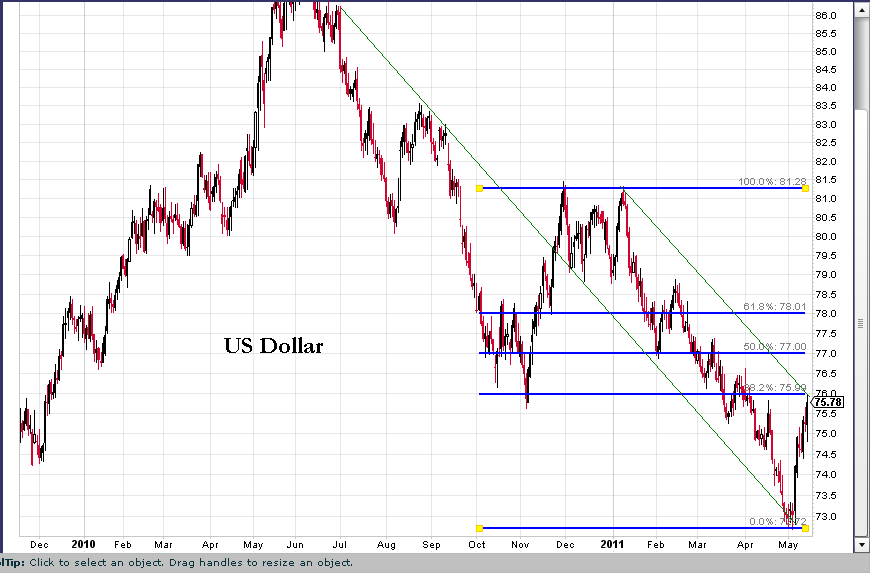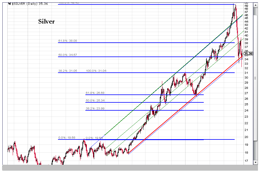 Gold, Silver, and Dollar Daily Charts with Long Term Trends and Fibonacci Retracements