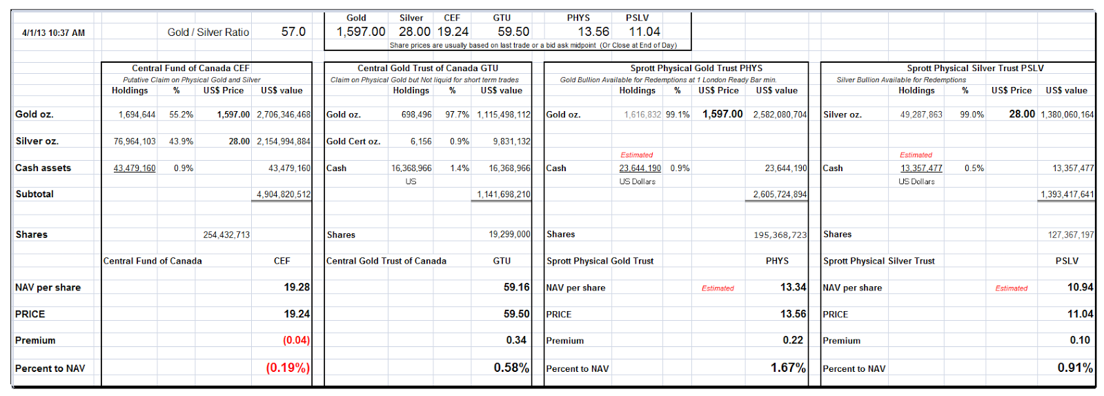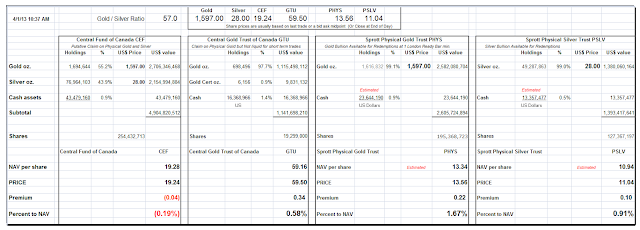 Net Asset Value Premiums of Certain Precious Metal Trusts and Funds